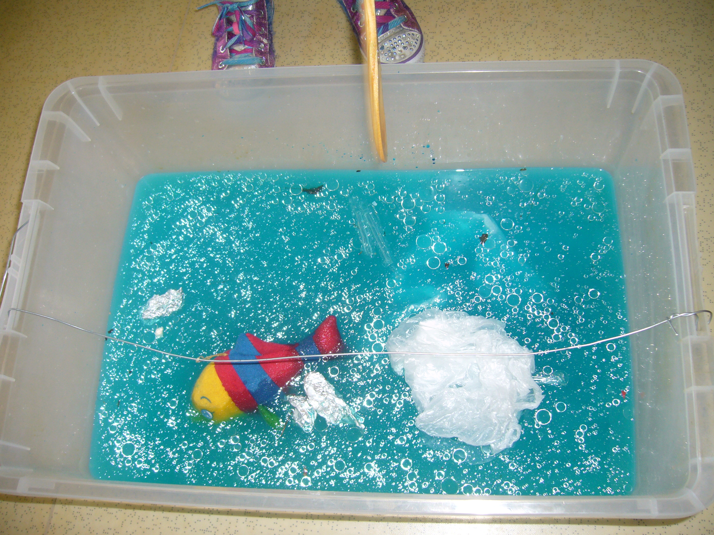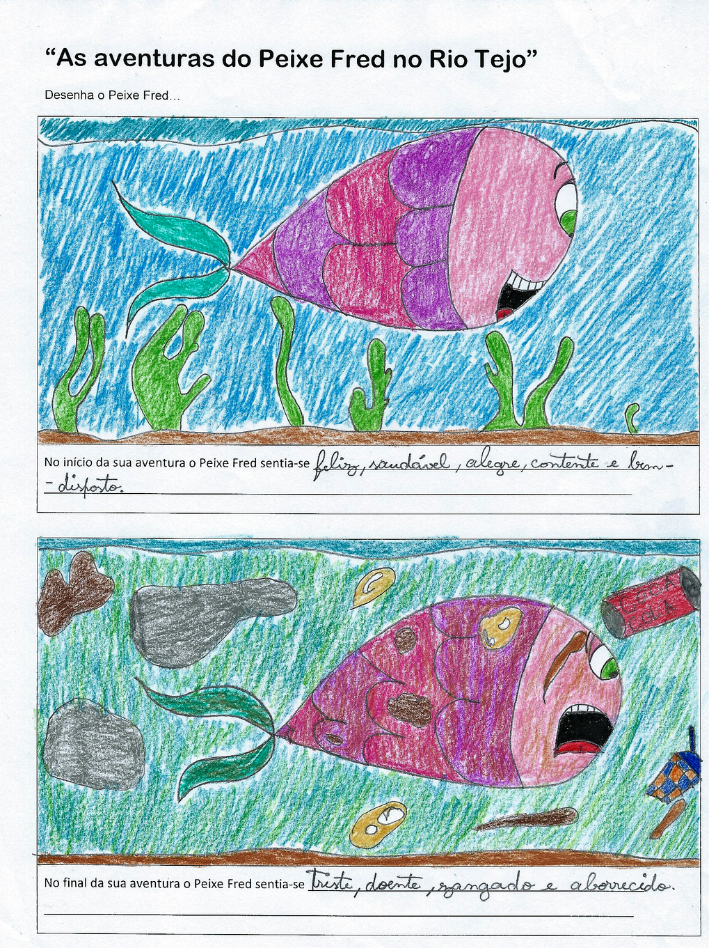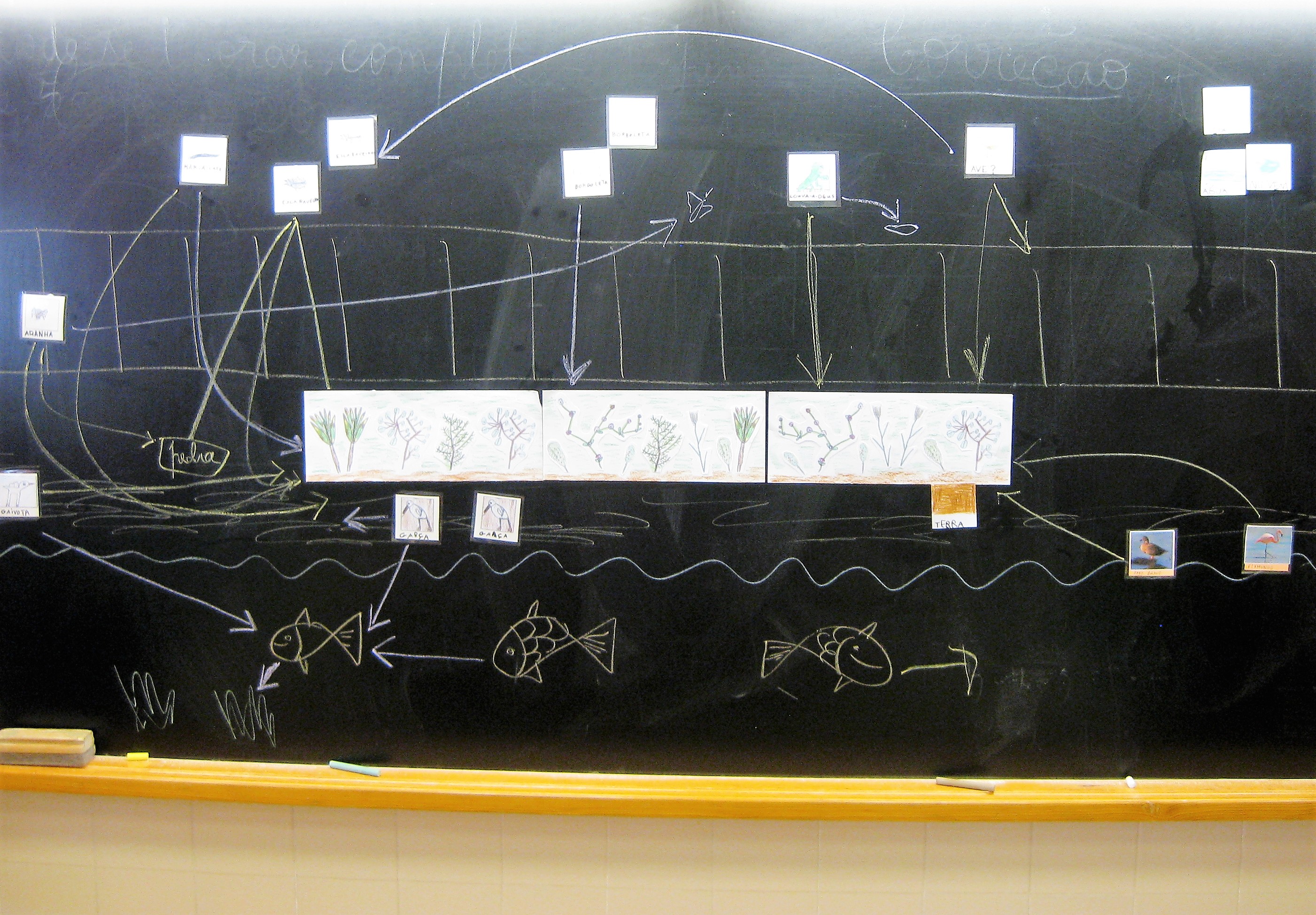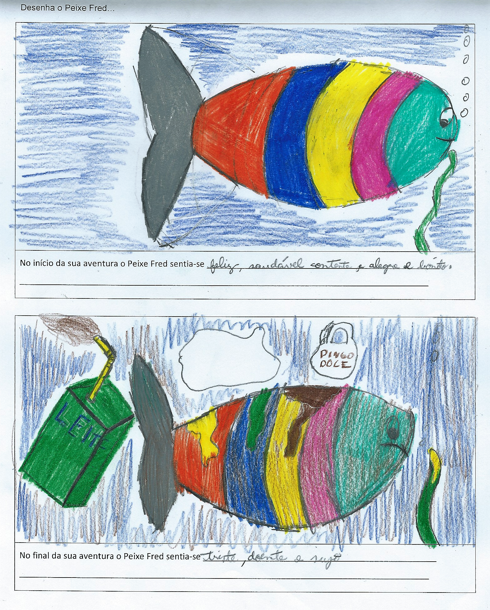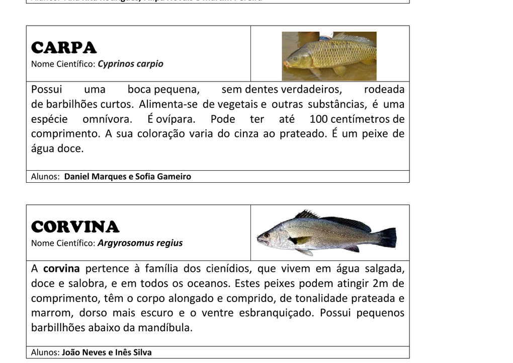 Os peixes grandes comem os peixes pequenos e as coisas verdes da água.