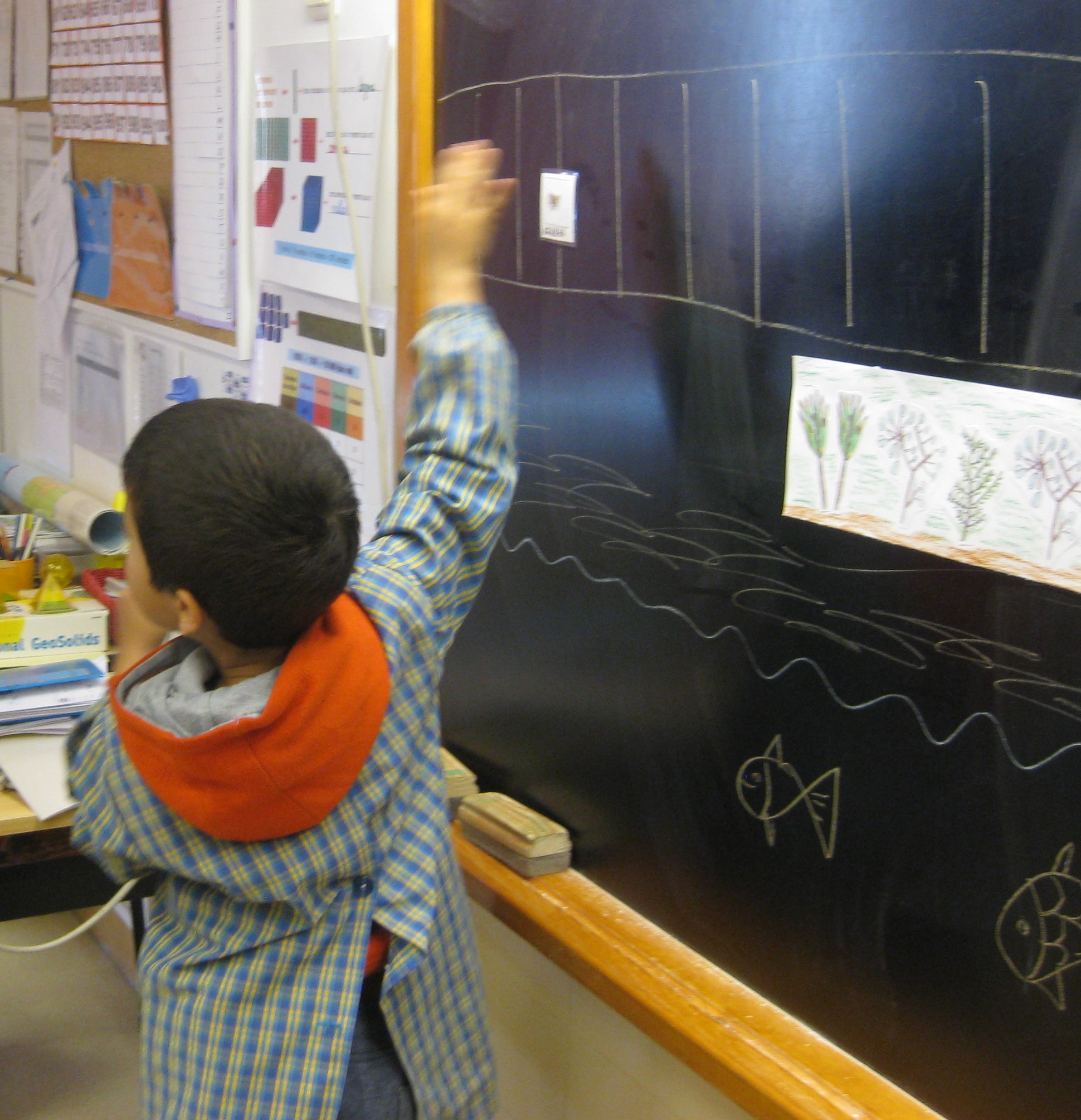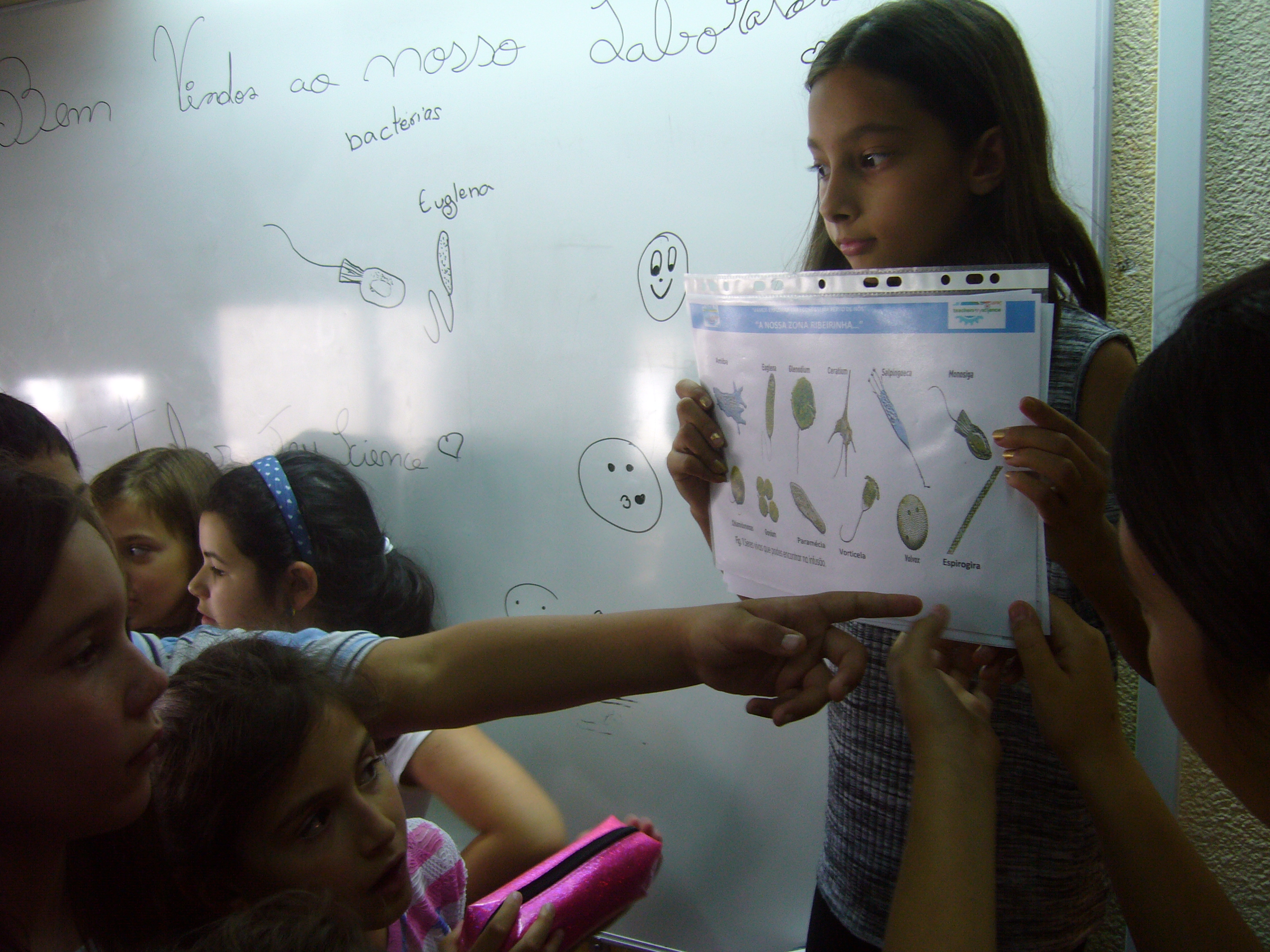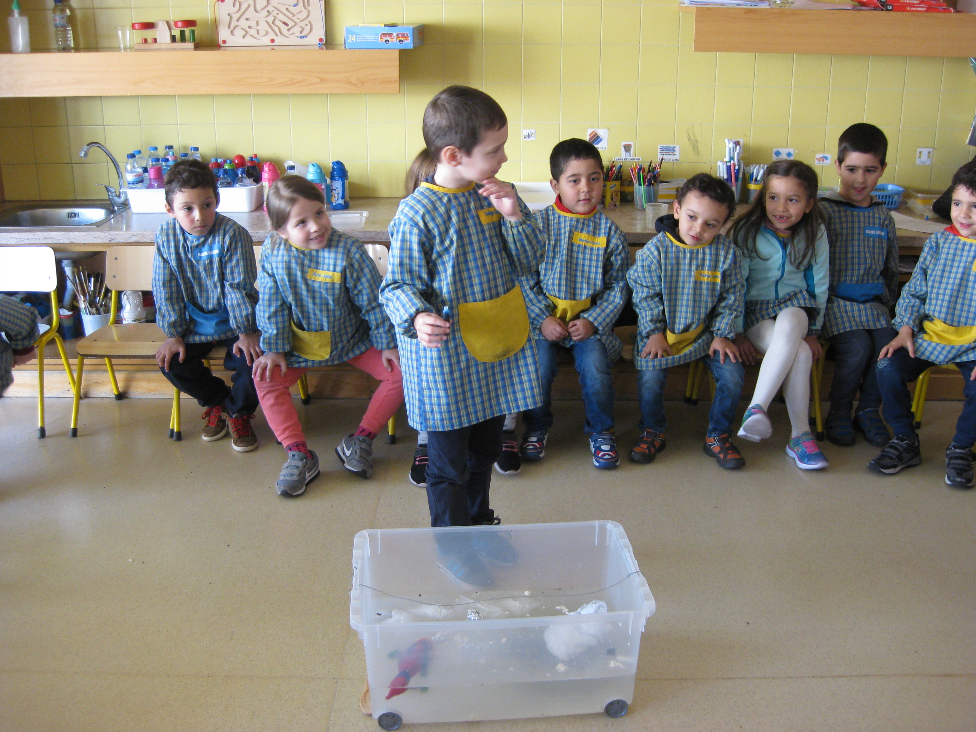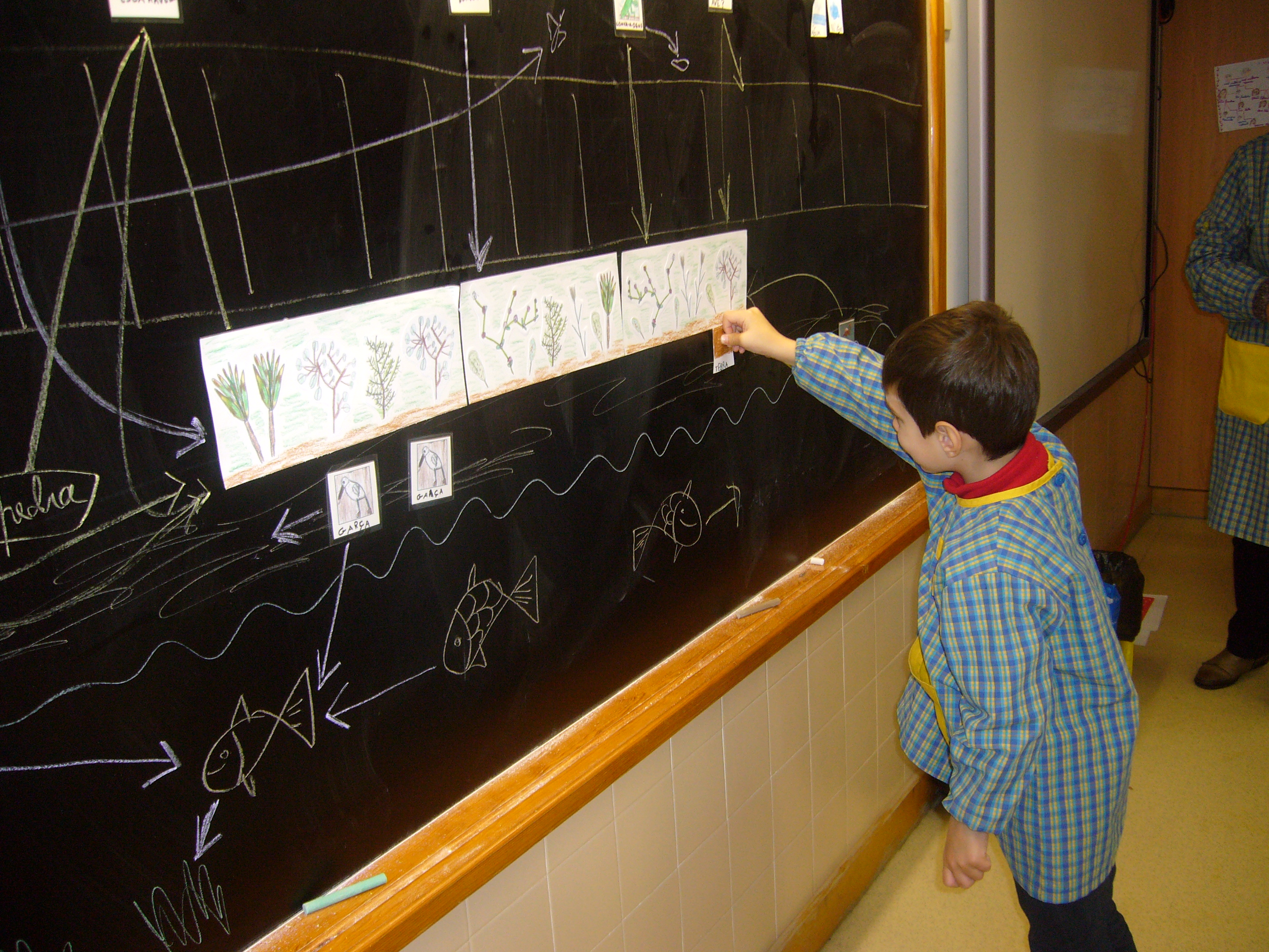 Os peixes grandes comem os peixes pequenos e as coisas verdes da água.