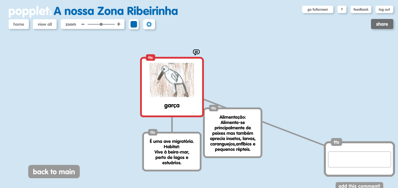 A garça habita na vegetação e alimenta-se de peixes que estão no rio.